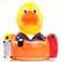 100% PVC | Quietschvergnügte Badeente im lustigen Outfit | Produktion gemäß EN71 | Geschmacksmusterschutz EU-weit
