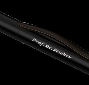 Die Lasertechnik eröffnet ganz neue Produktionsmöglichkeiten, weil hier noch feinere und präzisere Bearbeitungen möglich sind, und das in allen Materialien. Vor allem bei Metalloberflächen spielt der Laser seine ganze Stärke aus, indem er millimetergenau eine feine Schicht der Kugelschreiberoberfläche abträgt. Personalisierungen oder Rundumgravuren sind im uma Programm Dank der modernsten Lasertechnik auch hochglänzend umsetzbar.