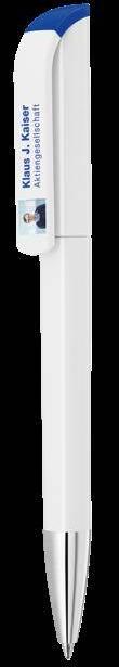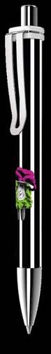 Dies verstärkt die ästhetische Wirkung eines Motives und kann sowohl auf Kunststoff als auch auf Metallschreibgeräten aufgeklebt werden.
