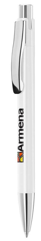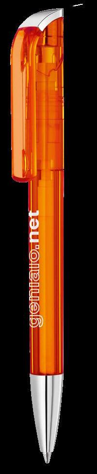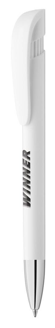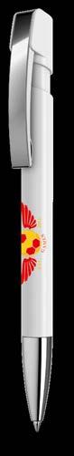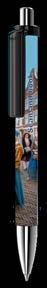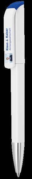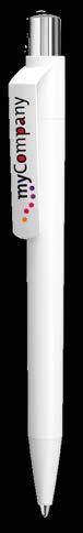 Impress your customers – rapidly, directly and with a personal touch – digital printing enables your desired ballpoint pen to be created very simply. Curtains ups for your ideas and on a gamut of promotional messages: Brightly coloured logos, colour schemes and gradations, even in small production runs – virtually no other printing technique delivers this level of flexibility. All you need to consider is, the colour shades which will here be converted into CMYK, may vary slightly from the exact PMS colours. The printing technology is limited to plane surfaces and can’t be used on concave and convex surfaces.