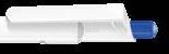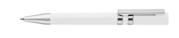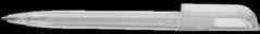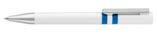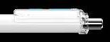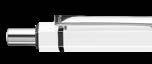 Kunststoff-Großraummine mit weißem Kunststoffrohr, silberner Schreibspitze und Wolfram-Karbid-Kugel (1.0 mm). Schreibleistung: ca. 1.500 m. Schreibpaste nach ISO-Norm.