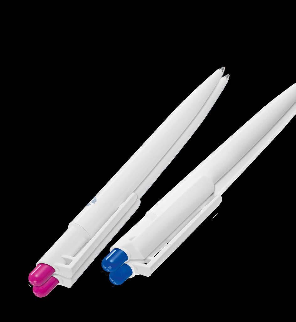 Depending on colour or material (transparent housing) we recommend the use of printing inks with a high contrast to the colour of the pen. This optimizes visibility and the legibility of the print.