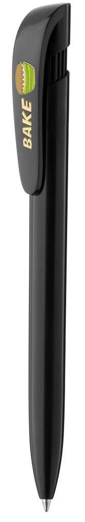Pad printing allows to print on concave and convex surfaces. When it comes to printing on clips it’s mostly done by pad printing or multi-coloured image printing. A film will be generated from the artwork, thereof a cliché will be created. By using a silicone pad (like a rubbered stamp) the colour will be transferred from the cliché onto a substrate. The advertising surface of cylindrical writing instruments have a maximum height of 2/3rds of the diameter. Pad printing can be used on any material.