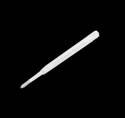 Large-capacity plastic refill with white plastic tube, silver writing tip and tungsten carbide ball (1.0 mm). Writing length: approx. 1,500 meters. German ISO-compliant ink paste.