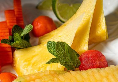 abre desde las 7:30 am para brindar servicio de desayuno y posteriormente pone a disposición los horarios de almuerzo y cena, permaneciendo en actividad hasta las 10 de la noche. El menú está basado en la gastronomía internacional, pero también los platos locales y otras comidas más ligeras –pizzas, nachos, hamburguesas- forman parte de la carta del restaurante.