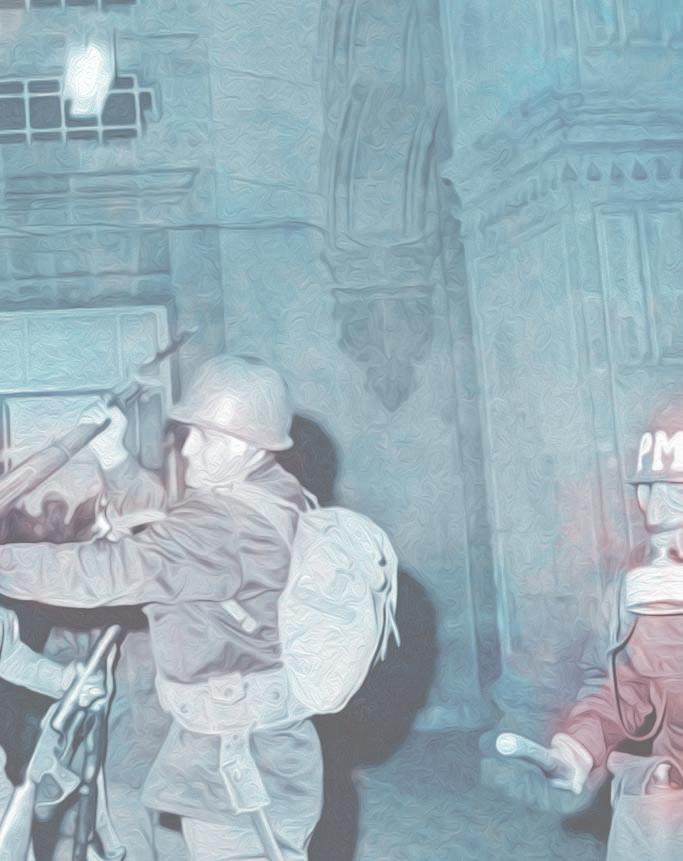 y casi siendo las 18:00 horas, el cielo de Tlatelolco se iluminó por dos bengalas que lanzó el Ejército, y dio la señal para la matanza.