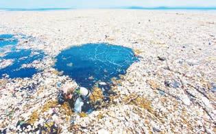 rastrados por las corrientes generan grandes manchas de plástico, siendo la más grande de ellas aquella localizada en el Pacífico con un cálculo de al menos 79 mil toneladas de plástico en un área de 1,6 millones de km2.