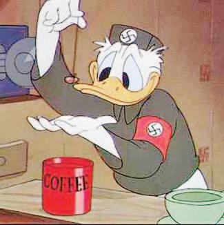 Durante la Segunda Guerra Mundial, la compañía Disney realizó el cortometraje titulado “La cara del Fuhrer” (Der Fuhrer´s Face). En esta historia Donald vive en nazilandia,