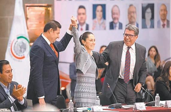 Posteriormente, la jefa de Gobierno de Ciudad de México, Claudia Sheinbaum Pardo, y el coordinador de la fracción parlamentaria de Morena en el Senado de la República, Ricardo Monreal Ávila, compartieron espacio en la reunión plenaria.