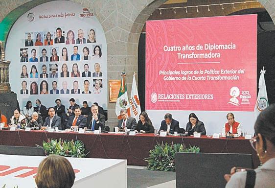 A la postre, el canciller Marcelo Ebrard Casaubón realizó una larga exposición sobre la situación de México en materia de política exterior, donde no aludió nada relacionado con sus aspiraciones presidenciales, subrayó que “debemos estar orgullosos de donde estamos, de nuestro país y de nuestro Presidente”.