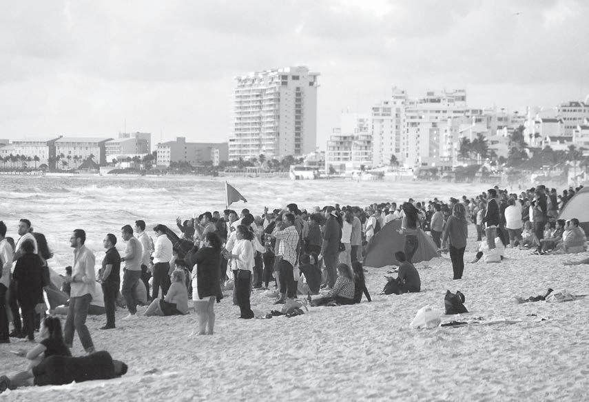 La población comenzó a llegar desde las 4 horas, con la única finalidad de recibir el nuevo ciclo en uno de los arenales mas bellos del Caribe Mexicano. Se reunieron alrededor de 300 personas.
