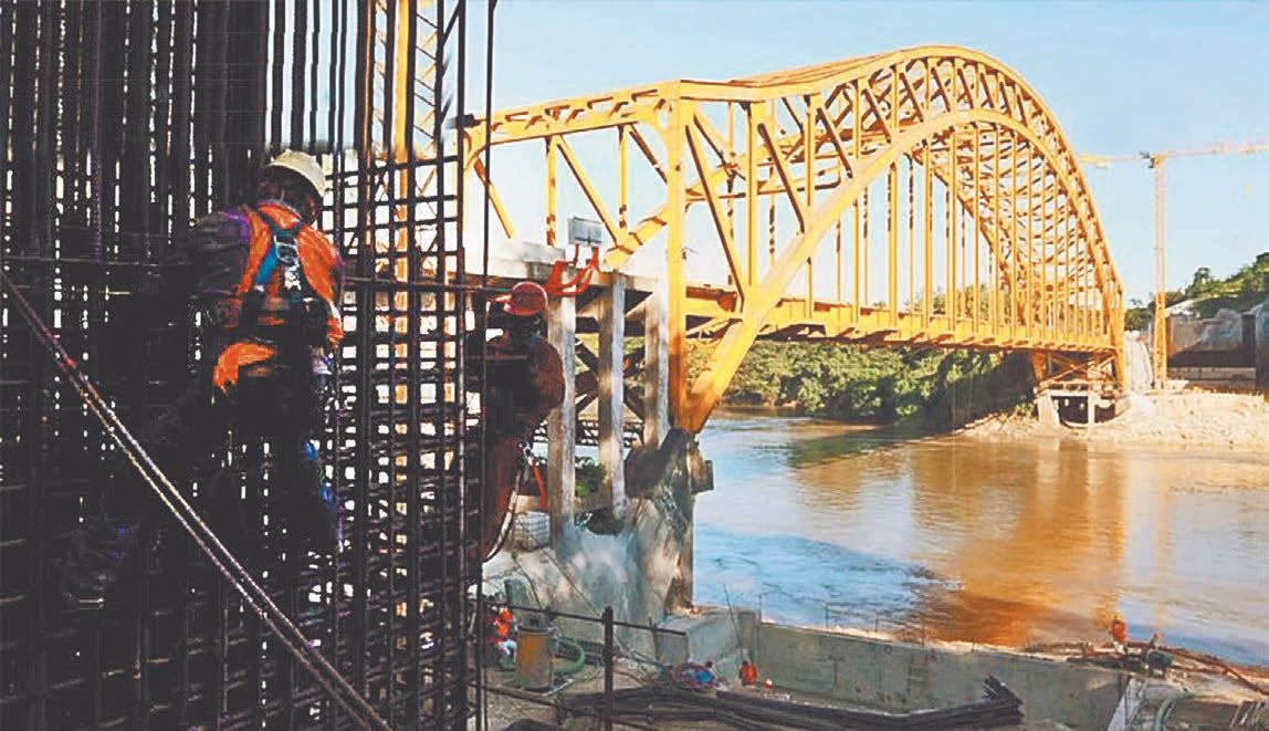 En el tramo 1, que va de Palenque a Escárcega, avanza la construcción del puente de Boca del Cerro, en Tenosique, Tabasco, con el armado de muros y la colocación del refuerzo.