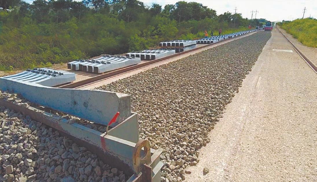 En el tramo 3, de Calkiní a Izamal, cerca de Maxcanú, Estado de Yucatán, sigue la distribución de riel y el acomodo de balasto; en el sitio ya se encuentran los durmientes para el armado de vía. Aquí también avanza un paso vehicular que dará seguridad al cruce del tren con vehículos y a la conexión con el poblado.