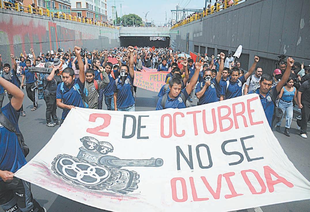 La marcha conmemoró 54 años de la muerte de más de 300 estudiantes en una masacre prota gonizada por el grupo paramilitar Batallón Olimpia contra una mani festación pacífica, que ocurrió 10 días antes de los Juegos Olímpicos de 1968, durante la presidencia de Gustavo Díaz Ordaz (1964-1970).