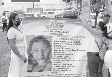 Dignidad, Identidad y Soberanía Quintana Roo Cancún, Quintana Roo, México, lunes 3 de octubre del 2022 Año 30 • No. 10800Directora General: Alicia Menéndez Figueroa Sin ley Acuden más de 2 mil morenistas al festejo en la capital, por la creación del partido Ejecutan a tiros a un hombre en una colonia irregular de Tulum Asesinan a un exmilitar durante un encuentro de beisbol, en Bacalar El Estado 10Policía 4 Policía 2 LA Mandataria, que acudió a un evento con motivo del aniversario de la fundación de Morena, en Chetumal, comentó que “ya estamos trabajando en ello” (en el atentado); las autoridades sólo anunciaron, a través de un tuit, que ya se abrió una carpeta de investigación por el hecho ocurrido el sábado, en la Isla de las Golondrinas.- (POR ESTO!) 1.65 homicidios al día, en promedio asesinatos registrados en Cancún, en el nuevo gobierno 11 decesos contabilizados en los primeros 8 días de Gobierno En la región se han detectado mil 64 personas con el Virus de Inmunodeficiencia Adquirida, de un total de 9 mil 33 en todo el país, revelan informes de la Secretaría de Salud (SSA). Los detalles, en la investigación de Por Esto! El Estado 12 y 13 PENÍNSULA EN DATOS Acumula la Península el 11.78% de los casos de VIH registrados en el 2022 Precio único: $10.00 Edición de 64 páginas en 6 Secciones con “Oportunos” Entre los pendientes del Fiscal en Q. Roo JULIO, 2019: Sahir Alexis, un regiomontano que llegó a Cancún a vacacionar, fue víctima de desaparición for zada al interior de una disco; a la fecha sigue sin aparecer. AGOSTO, 2020: Luis A. tenía 13 años cuando fue víctima de un homicidio doloso; lo privaron de la libertad junto con su padre y sus amigos; aún no hay detenidos. OCTUBRE, 2021: un bebé de 6 meses murió al recibir un tiro en la cabeza; el pequeño era cargado por su padre cuando fue atacado en Aku mal; el crimen sigue impune. JULIO, 2022: Fernanda Ca yetana, de 13 años, desapa reció en la zona continental de Isla Mujeres; a la fecha no ha sido localizada y no hay detenidos.