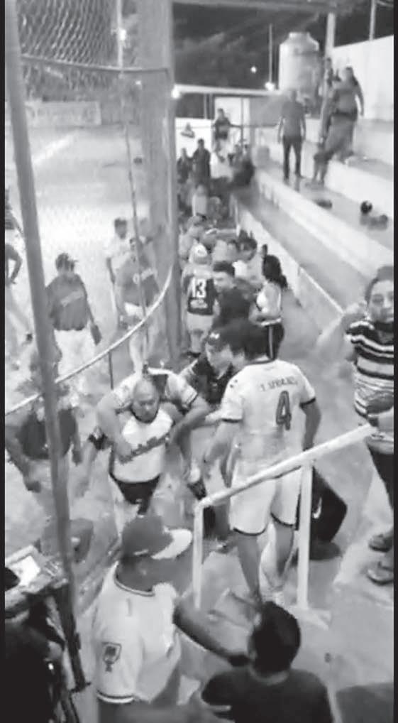 una en el tobillo. Además, un menor de 10 años resultó con una herida en un brazo, al parecer un rozón, y un exmilitar de 40 años, quien presuntamente pertenecía al equipo local, perdió la vida en el campo de juego.