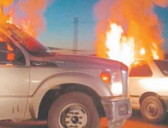 Policías municipales de Tepatitlán informaron que, en la delegación de Pegueros, varios sujetos que iban en tres camionetas pick up cerraron la circulación a un conductor, le robaron su auto Tsuru modelo 1994, el cual fue localizado incendiado y obstruyendo la vía con rumbo a Jalostotitlán. En ese mismo evento hallaron una camioneta marca Ford con la cabina incendiada.