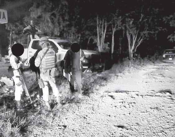 ganizada; por lo anterior, y ante una amenaza actual, real e inminente, los integrantes del Ejército Mexicano repelieron la agresión armada de la que resultó un agresor sin vida y la detención de seis presuntos criminales, de los cuales uno de ellos herido, asegurándoles lo siguiente: 15 armas, 77 cargadores, cartuchos diversos, equipo táctico diverso, cinco vehículos y dos motocicletas.
