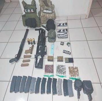 A los detenidos se les aseguraron 30 armas largas, 15 armas cortas, tres granadas calibre 40 milímetros, cargadores, cartuchos y equipo tác