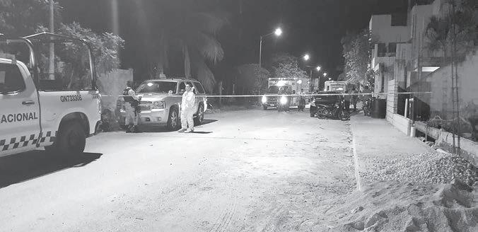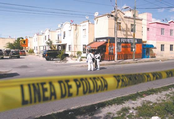 Sol, en Solidaridad Policía 4 El Estado 10 El Estado 2 y 3 Policía 2 EL titular de la FGE (c) regresó a la ínsula y prometió ha cer cambios en la PDI, además de repetir las cifras del tra bajo que hace la dependencia a su cargo.- (POR ESTO!) CERCA de las 20 horas, la víctima, que fue identificada con las iniciales J. M, fue acribillada afuera de su domicilio en la colonia Emiliano Zapata; con este hecho van 8 asesinatos en el primer año de gestión de la Edil.- (POR ESTO!) CINCO casquillos percutidos fueron localizados, en la colonia Flores Magón Las cuentas de Mara Lezama Fuente: Recuento PorEsto! / SESNSP 454 homicidios en los primeros 275 días del año 1.65 homicidios al día, en promedio 1,815 días faltan 7 asesinatos van en Cancún, en el nuevo Gobierno 14 decesos contabilizados en los primeros 10 días de Gobierno 1 muerte violenta ocurrida ayer