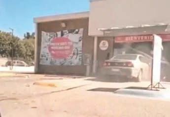 En redes sociales se difundieron videos donde se observó un automóvil impactar la entrada de una tienda.