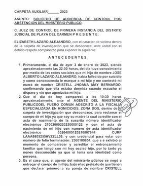 Dignidad, Identidad y Soberanía Quintana Roo Cancún, Quintana Roo, México, viernes 6 de enero del 2023 Año 30 • No. 10894 Directora General: Alicia Menéndez Figueroa Fiasco Precio único: $10.00 Edición de 64 páginas en 6 Secciones con “Oportunos” Con 7 años de autonomía como Municipio, Puerto Morelos es presa de la inseguridad: acumula más de 2 mil 537 ; habitantes acusan que en dos Gobiernos no han podido darles un hospital, ni alcantarillado eficiente / Dejan cuerpo descuartizado en un bote, en la Región 97 / Impacta captura de Ovidio Guzmán en el tráfico aéreo de Cancún; desvían un vuelo y cancelan otro en el AIC Pierde Laura Berinstain amparo para no ser vinculada a proceso Cae pareja por el feminicidio de una taxista registrado en la capital Municipios 3 Policía 4 Las cuentas de Mara Lezama Fuente: Recuento PorEsto! / SESNSP 1,724 días faltan 4 homicidios en el día 5 de lo que va del año 124 asesinatos se registran en Cancún, en el nuevo Gobierno 169 decesos contabilizados en los primeros 103 días de Gobierno PARTES de la víctima estaban afuera de la escuela primaria Solidaridad, sobre la avenida Chumayel; vecinos denunciaron a las 23:00 horas.- (POR ESTO!) LOS pasajeros del vuelo redireccionado hacia