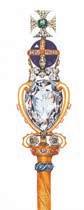 Otras objetos: Cetro de la paloma, Orbe real, Vara con paloma, ampolla de oro y trono.