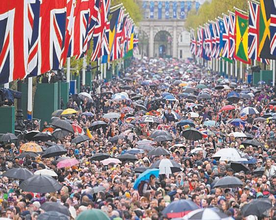 La multitud reunida en las calles de Londres, pese a la lluvia, estalló en gritos de júbilo.