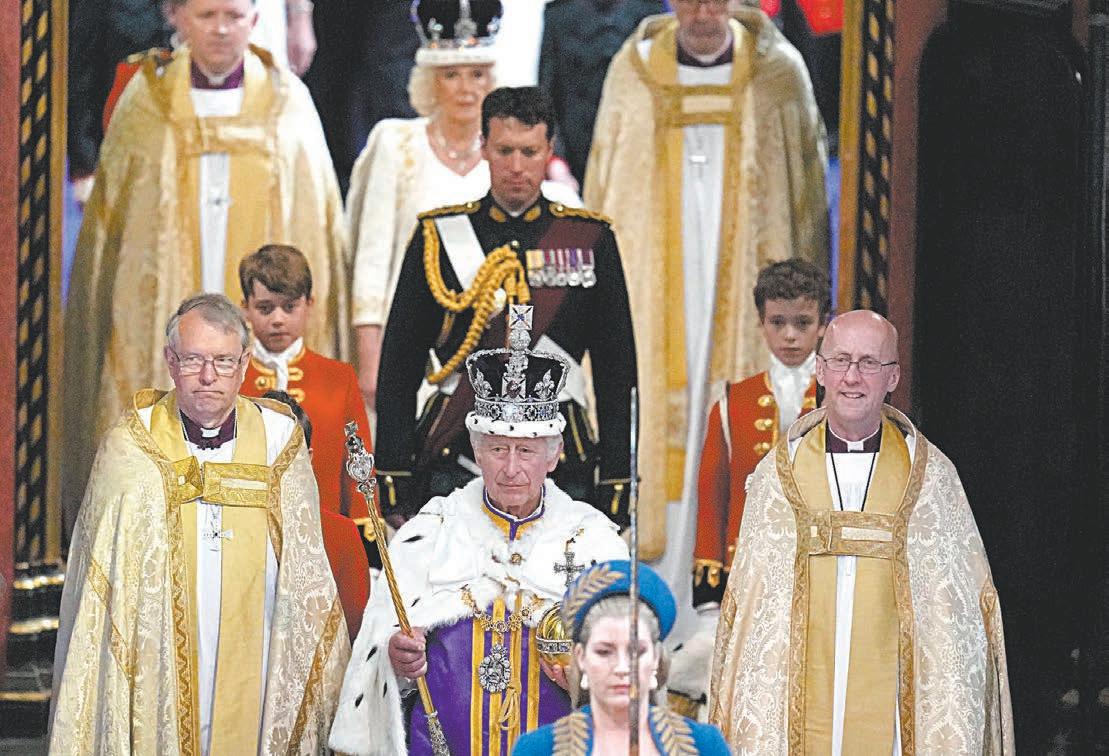 En la suntuosa Abadía de Westminster, en el centro de Londres, el arzobispo de Canterbury, Justin Welby, líder espiritual de la Iglesia de Inglaterra, colocó la corona de San Eduardo sobre la cabeza del Monarca, de 74 años. No había sido llevada desde la coronación en 1953 de su madre, fallecida en septiembre. La reina Camila, de 75 años, fue coronada posteriormente.
