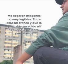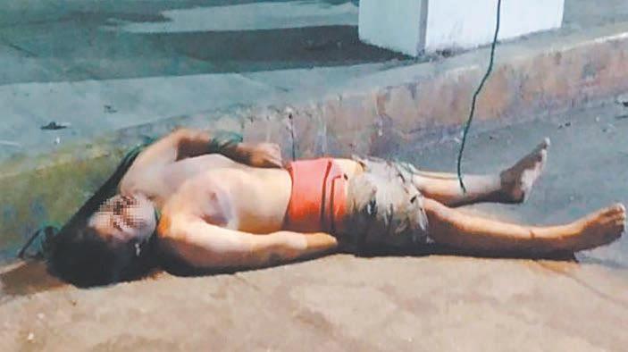Al costado de la unidad está la persona fallecida que tiene uniforme militar y con un chaleco.