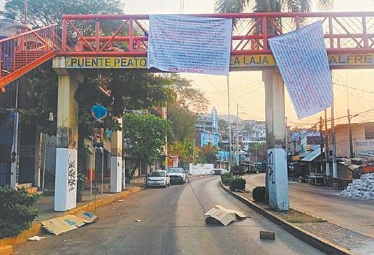 cuerpos, se encontraron dos mantas presuntamente firmadas por la célula criminal de Los Rusos, con mensajes dirigidos a otras organizaciones criminales que controlan el tráfico de drogas en Acapulco.