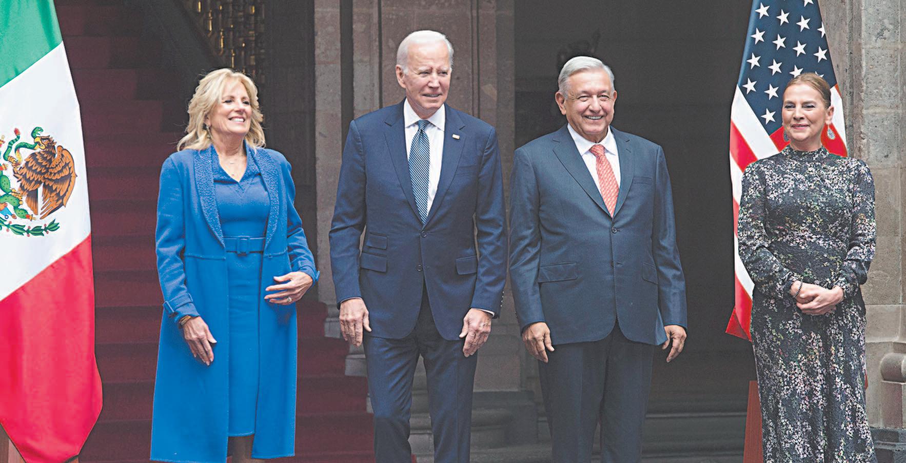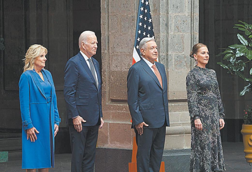 A bordo de La Bestia, el presidente estadounidense, Joe Biden, y su esposa, Jill Biden, arribaron ayer por la tarde al Palacio Nacional donde los esperaban el presidente Andrés Manuel López Obrador y