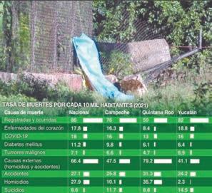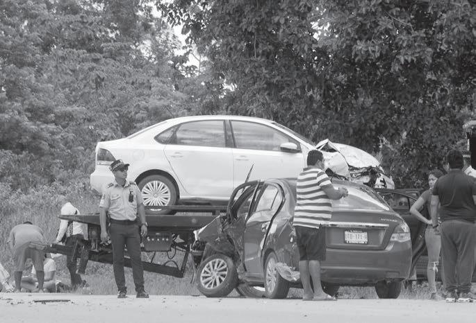 PUERTO.- Una mujer muerta y media docena de lesionados, además de daños materiales su periores a los 50 mil pesos, fue el saldo de un accidente múlti ple, cuando una persona, bajo los efectos del alcohol, impactó a una motocicleta, lo que ocasionó que ambos ocupantes salieran proyec tados hacia el asfalto, dando como resultado la muerte de una joven. El responsable, al intentar darse a la fuga, colisionó la parte posterior de una camioneta en la que viajaba una familia. Tras el reporte del in cidente al número de emergencias 911, las autoridades policiales y de investigación llegaron al lugar para hacer las diligencias necesarias.