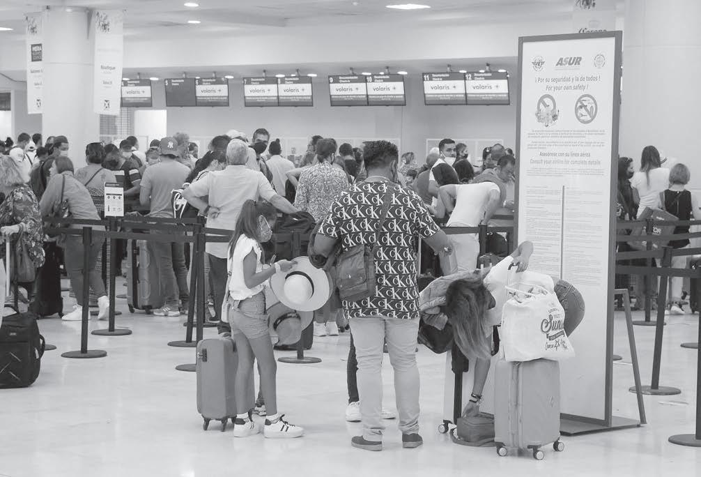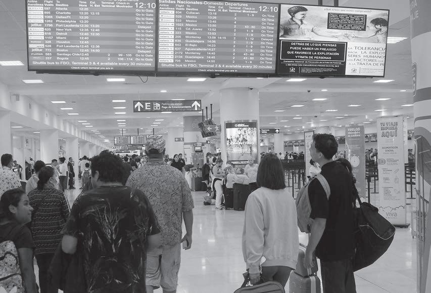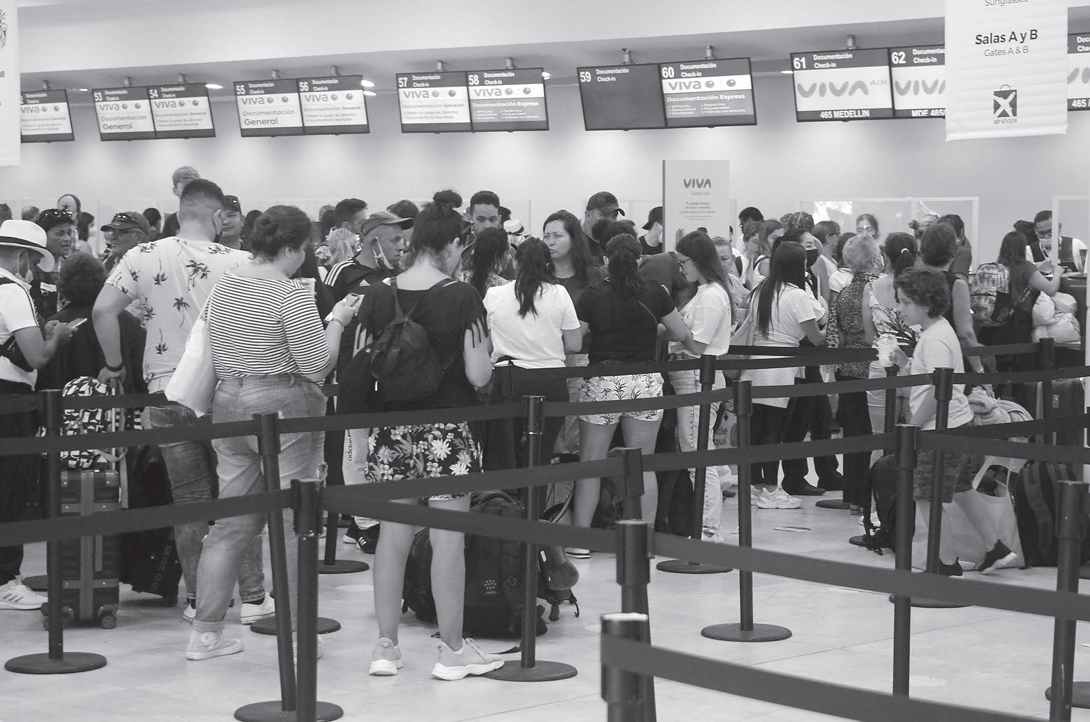 A pesar de estar en temporada baja, las tres Terminales del Aeropuerto Internacional de Cancún (AIC) contabilizaron más de medio millar de visitantes, tanto nacionales como extranjeros, mismos que acapararon los pasillos y los mostradores para documentar su equipaje, pues durante la jornada dominical se registraron
