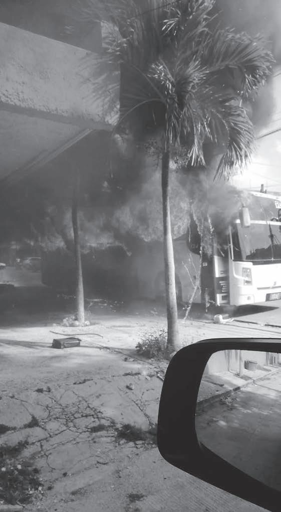 El siniestro ocurrió en la calle 32, entre las avenidas Portillo y Francisco I. Madero también conocida como Ruta 4, en la Supermanzana 69, donde fue reportado el incendio de un autobús de pasajeros.