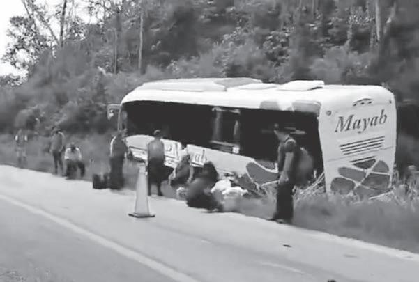 Por Lusio Kauil JOSÉ MARÍA MORELOS.-Dos personas resultaron con lesiones y otras más sufrieron crisis nerviosas, luego de un accidente que se registró ayer, en el que estuvieron involucrados un autobús de la línea Mayab y un automóvil particular. Los hechos ocurrieron en la carretera Federal 185, tramo José María Morelos-Polyuc.