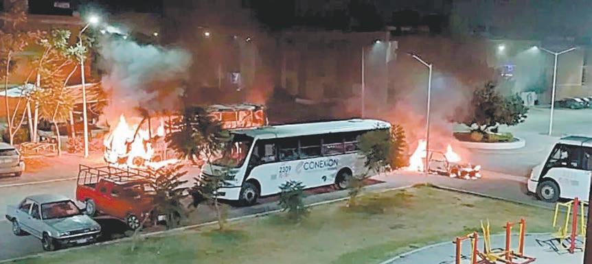 A la postre, los vecinos captaron cómo sujetos armados incendiaron un camión de transporte de personal y otra unidad, ambas consumidas por el fuego.