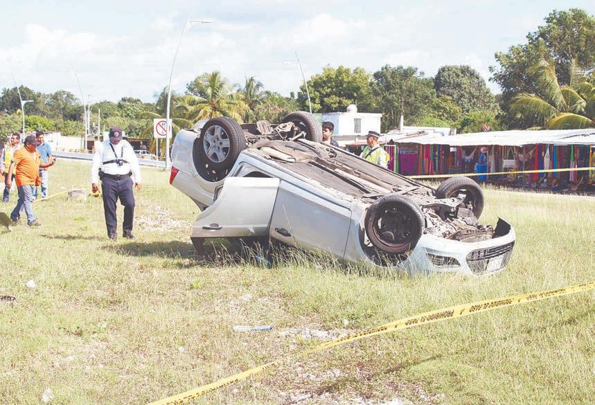 PECHE, Cam.- Daños totales fue el saldo de un hecho vial ocurrido en la carretera Campeche-Mérida a la altura del poblado de San Francisco Kobén, donde un inexperto conductor perdió el control de su auto compacto el cual acabó volcado dentro del camellón central quien pese a las afectaciones, sus lesiones fueron catalogadas como menores, en tanto el hecho fue turnado de inmediato ante el Ministerio Público (MP).