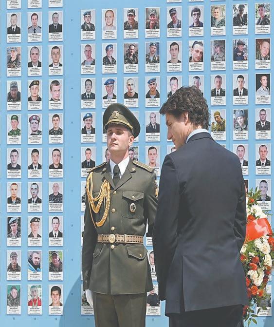 Trudeau depositó una corona de flores junto a un muro donde se exhibían los rostros de los soldados caídos en combate en Kiev, mientras tocaba una orquesta militar. El presidente ucraniano, Volodmir Zelenski, informó de “acciones contraofensivas” de su Ejército en el frente.
