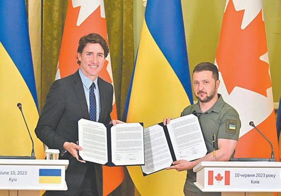 10 millones de dólares para apoyar a Ucrania a hacer frente a las consecuencias y 500 millones de dólares de ayuda militar adicional. Además, anunció que Canadá participará en los esfuerzos multinacionales para “capacitar a pilotos de combate, mantener y apoyar el programa de aviones de