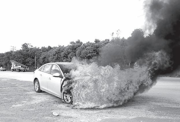 Como pérdida total acabó un automóvil, tras quemarse a unos metros de la avenida José López Portillo . El conductor logró orillarse a tiempo y salir de la unidad, la cual comenzó a sacar fuego del motor, presuntamente debido a un corto circuito.