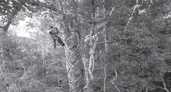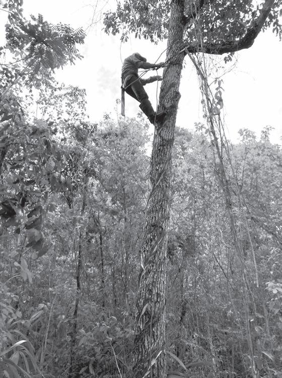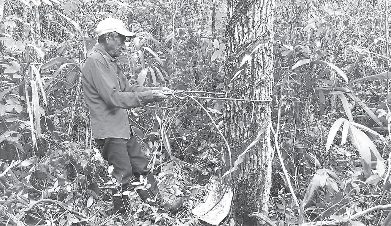 En la Zona Sur de la Entidad aún no está disponible el servicio de Uber EL kilo de resina del chicozapote se comercializa en $100, refiere Gregorio Cámara, de 88 años, quien aún sube árboles para extraerla.- (A. Cohuó)