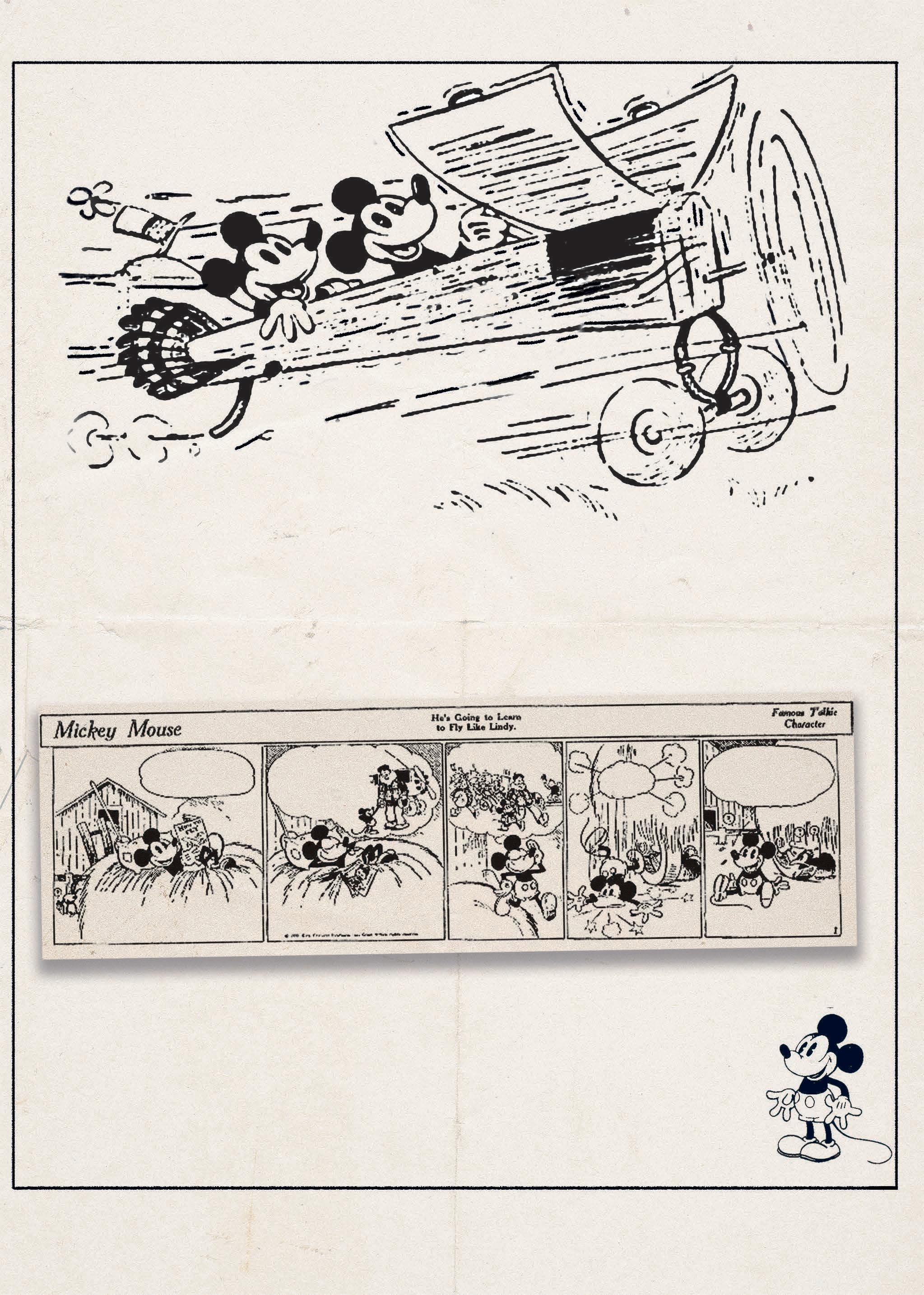 13 de enero de 1930, Mickey Mouse hizo un viaje del celuloide al papel de los diarios y se publicó por primera vez con divertidas aventuras en una tira cómica. Su simpatía despertó gran popularidad en niños y adultos. Los detalles, en