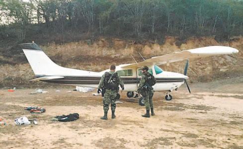 CIUDAD DE MÉXICO.- Ele mentos del Ejército y Fuerza Aé rea Mexicanos aseguraron en el municipio de Tamazula, Durango, una aeronave en la que se trans portaban más de 300 kilogramos de posible cocaína y un arma larga.