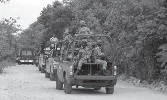 Por tierra, un convoy conformado por más de una veintena de unidades de las autoridades municipales, estatales, ministeriales, la Guardia Nacional y la Secretaría de la Defensa Nacional (Sedena), se enfilaron hacia el mismo punto, llegando finalmente al frac-
