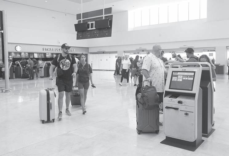 Baja afluencia registró ayer, al mediodía, la Terminal 4 del Aeropuerto Internacional de Cancún, pues aproximadamente entre 500 y 600 personas, en su mayoría estadounidenses, salieron de la Entidad o llegaron a vacacionar.