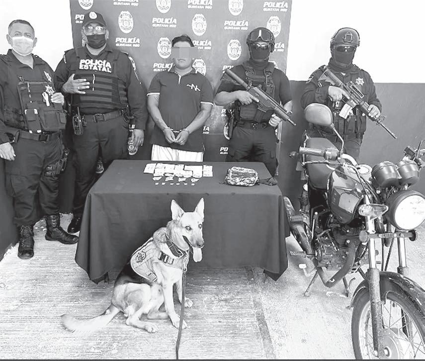 Al ser detenido se le practicó una revisión de rutina que permitió localizar varias dosis de diferentes drogas en una cangurera, por lo cual fue asegurado por agentes de la Policía Quintana Roo.