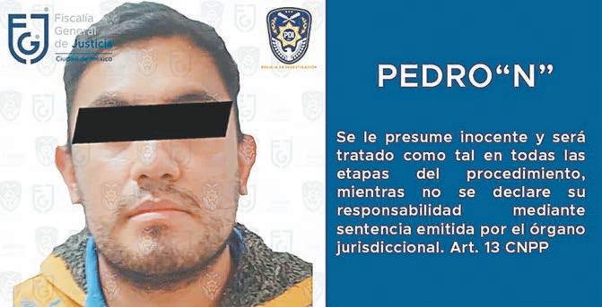 CIUDAD DE MÉXICO.- La Fiscalía General de Justicia de la Ciudad de México (FGJ-CD MX) informó anoche que agen tes aprehendieron a Pedro “N” por su presunta participación en el delito de feminicidio en agra vio de la joven Lidia Gabriela.