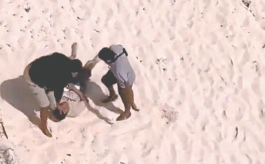 Graban a presuntos delincuentes cuando agreden a un ambulante frente al Crown Paradise