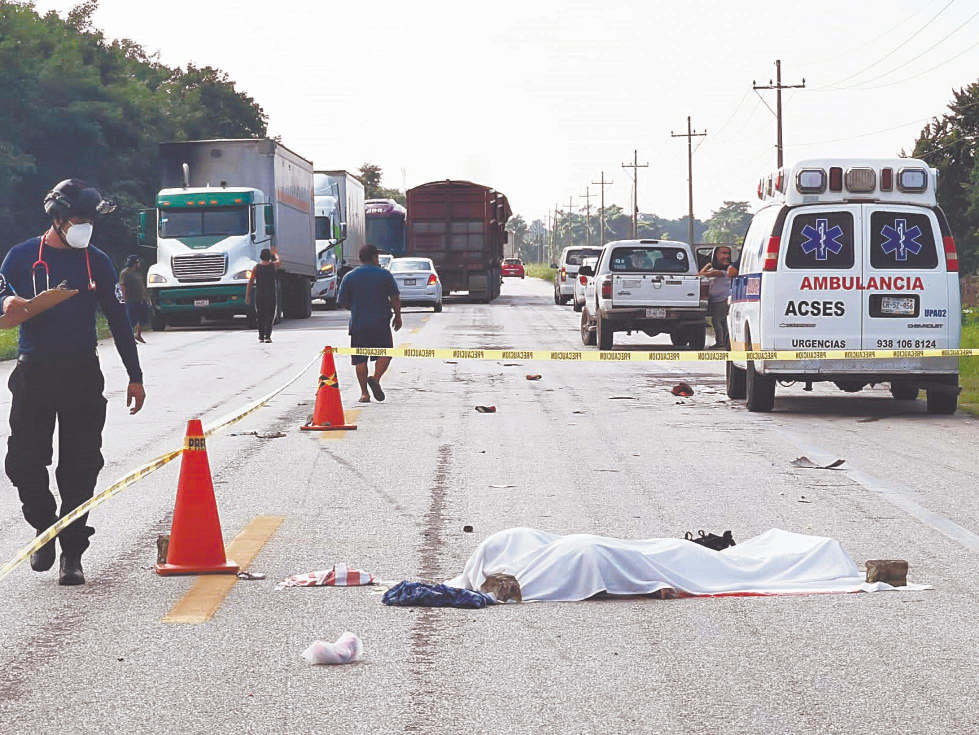 Momentos más tarde, peritos criminalistas levantaron los cuerpos de las tres víctimas mortales, todas jóvenes, para su respectivo traslado al Servicio Médico Forense para proceder a la necropsia e identificación.